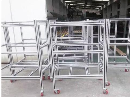 若是使用截面大小為20x20毫米型材來定做,那么一般是較為小型的周轉車,其能夠承載的能夠達到大約30-50kg,同時在長度上不可以過長。
